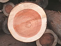 左の写真は針葉樹の断面ですが、いわゆる赤身(心材部)と白身(辺材部)にきれいに分かれています。