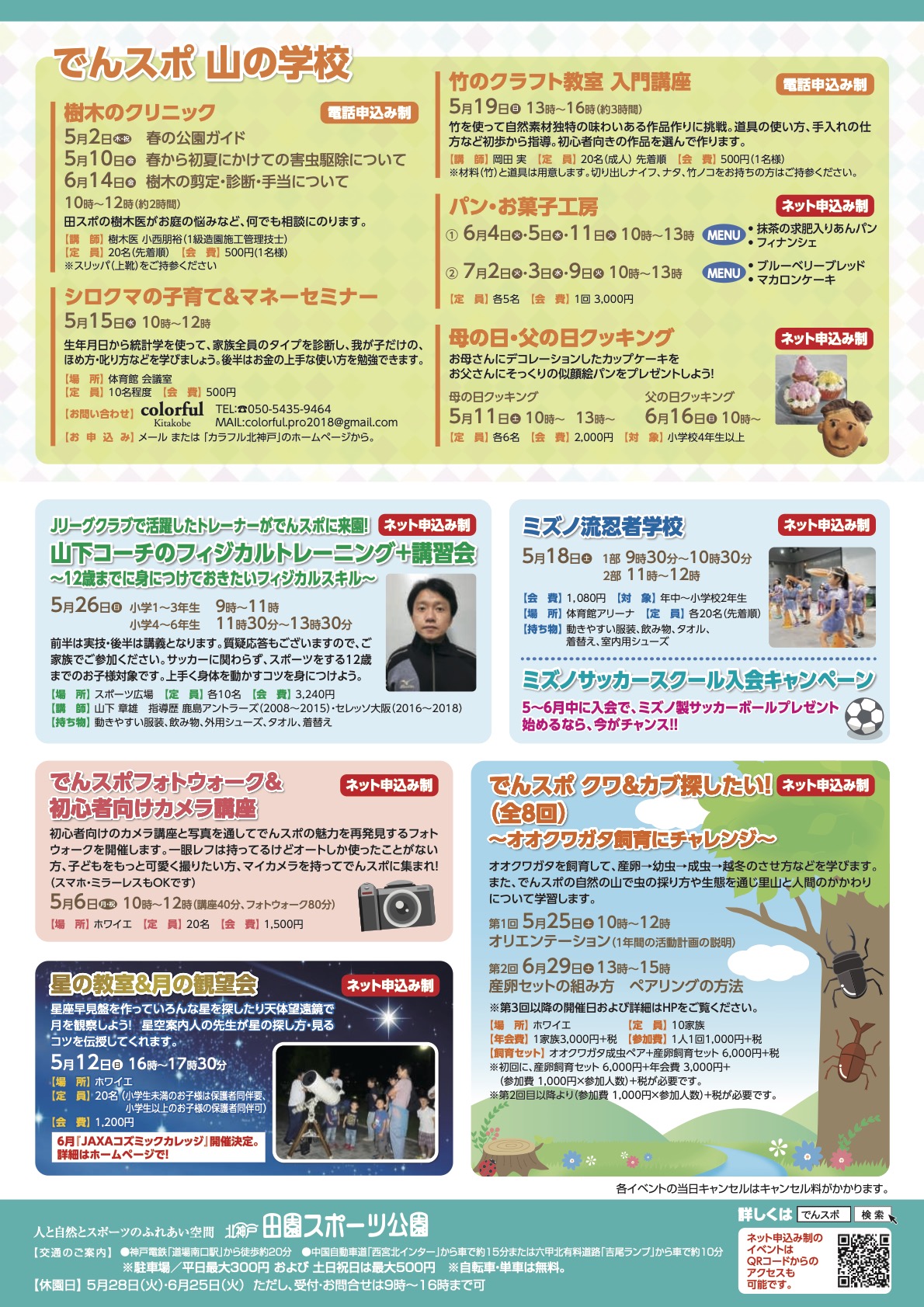 北神戸田園スポーツ公園 樹木クリニック講師2019年5月2日・5月10日・6月14日 2019.04.01 お知らせ 樹木のクリニック 5月2日 春の公園ガイド 5月10日 春から初夏にかけての害虫駆除について 6月14日樹木の剪定・診断・手当について 10時~12時(約2時間) 電話申込み制 田スポの樹木医がお庭の悩みなど、何でも相談にのります。 【講 師】樹木医 小西朋裕(1級造園施工管理技士) 【定 員】20名(先着順) 【会 費】500円(1名様) ※スリッパ(上靴)をご持参ください Post