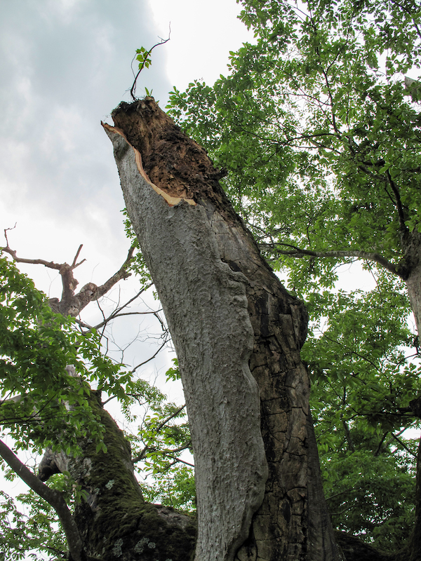 当初、四年計画で始まった大ケヤキの復興作業だが、樹木へのダメージは深刻であり現在も継続中です。